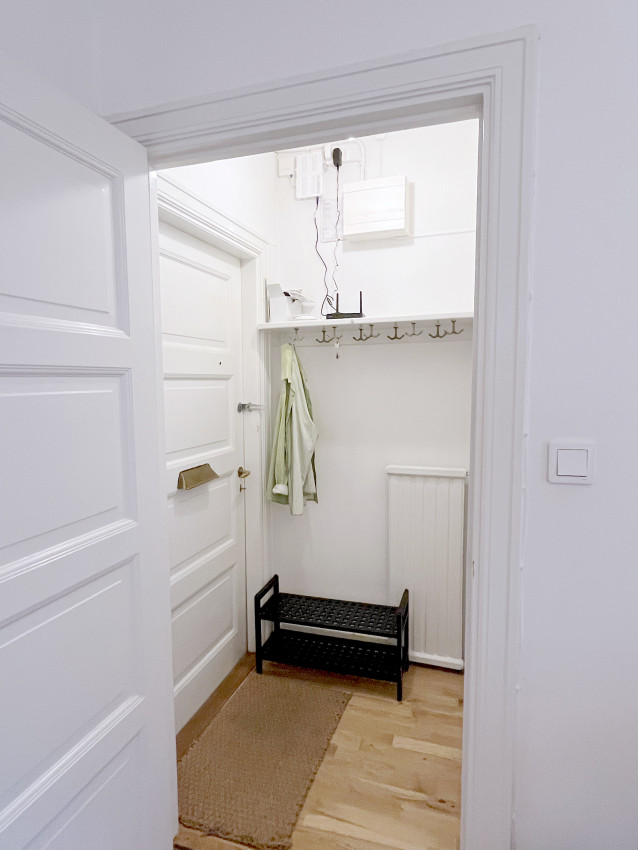 Lägenheten är välplanerad med separat kokvrå, hallutrymme och en inbyggd garderob med mycket förvaringsutrymme. Den totalrenoverades 2018, så allt är i toppskick med nytt parkettgolv och påkostade moderna detaljer. Badrummet är helkaklat, har reglerbar golvvärme, dimmbara spotlights och handdukstork. Induktionshäll och kyl med frysfack i köket. Samtidigt har originaldetaljer omsorgsfullt behållits – med andra ord en perfekt mix av modern lyx och anrik historia.